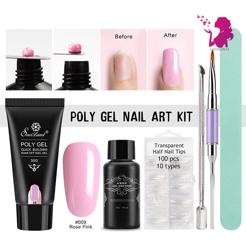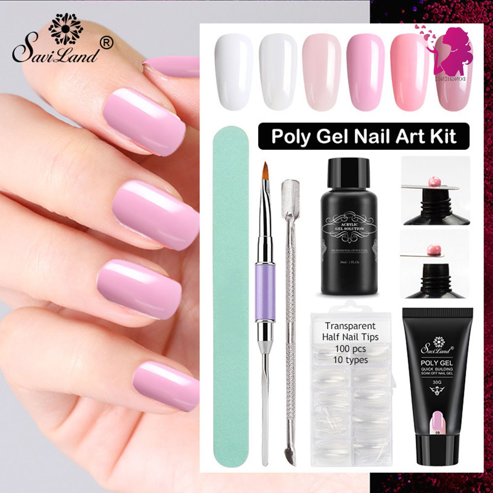 Poly Gel Kit Led Uv Extend Gel Nail Art Transparent Clear Nail Tips Base Coat Top Coat Shopee Indonesia