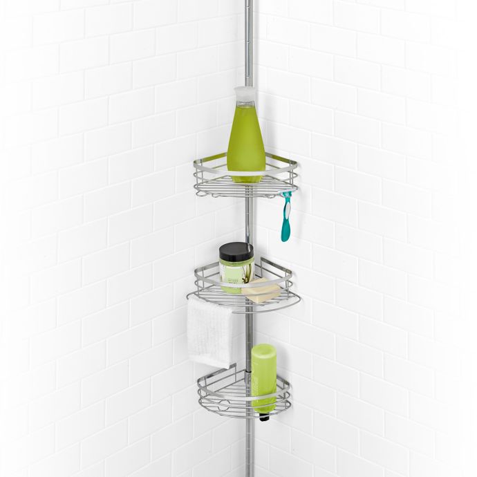 29 out of 5 stars based on 30 reviews 30 ratings. Product Title SUNSIOM Bathroom Shower Caddy Shelf Corner Bath Wall. Style Tension Corner Pole Caddy in Satin Nickel with 4 Shelves The Glacier Bay L.