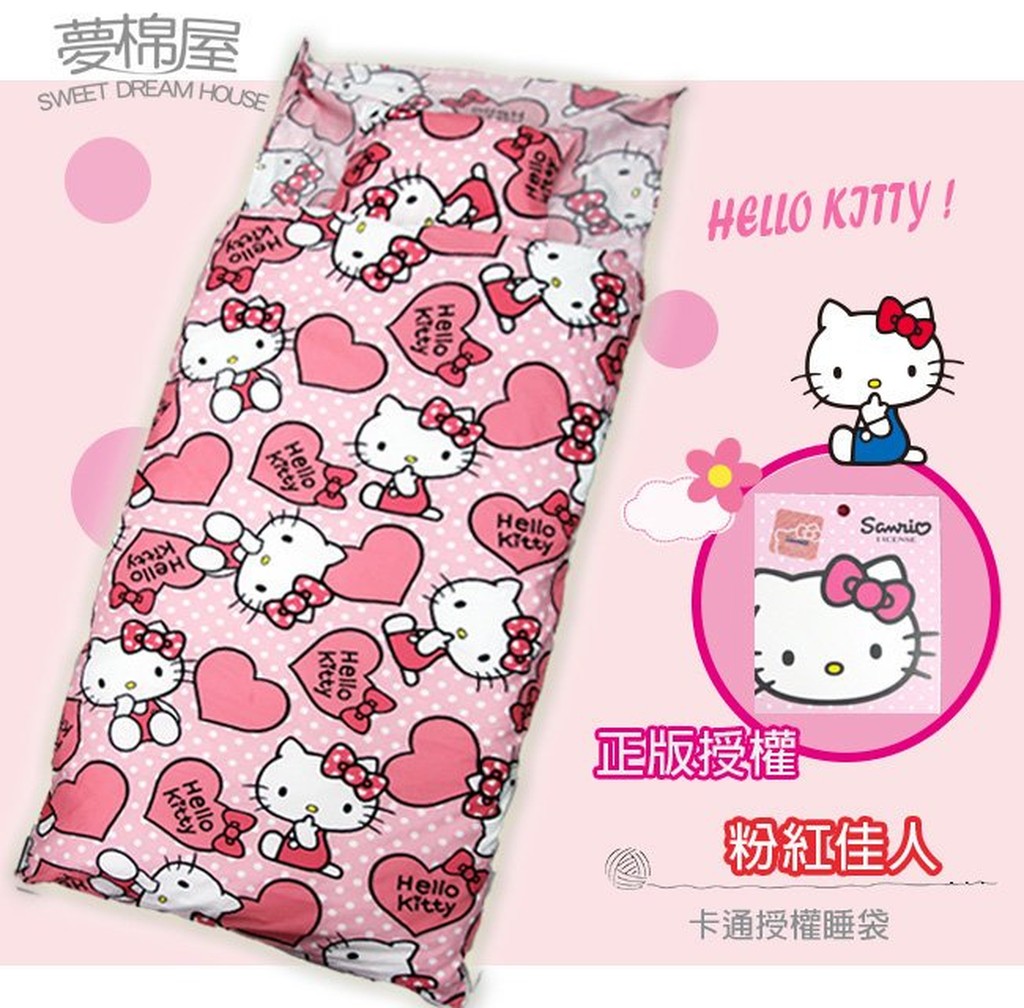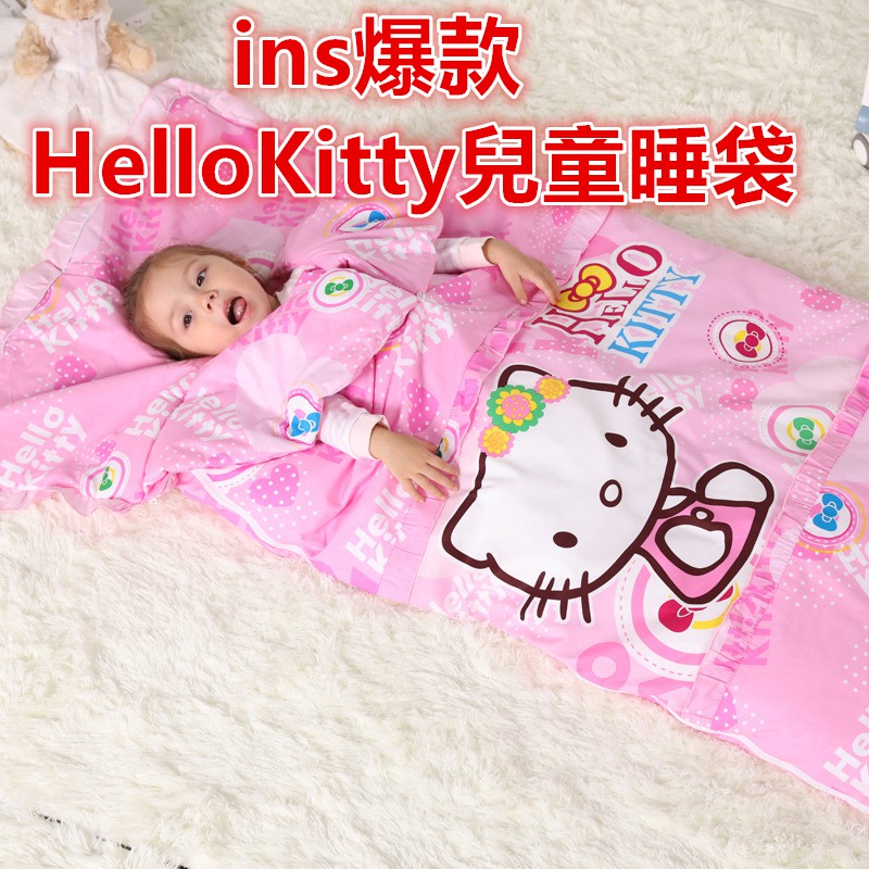 A pink Hello Kitty reskin for the sleeping bag. 12122016 Hello Kitty Youth Sleeping Bag Sanrio 28 x 56 inches. The most common kitty sleeping bag material is cotton.