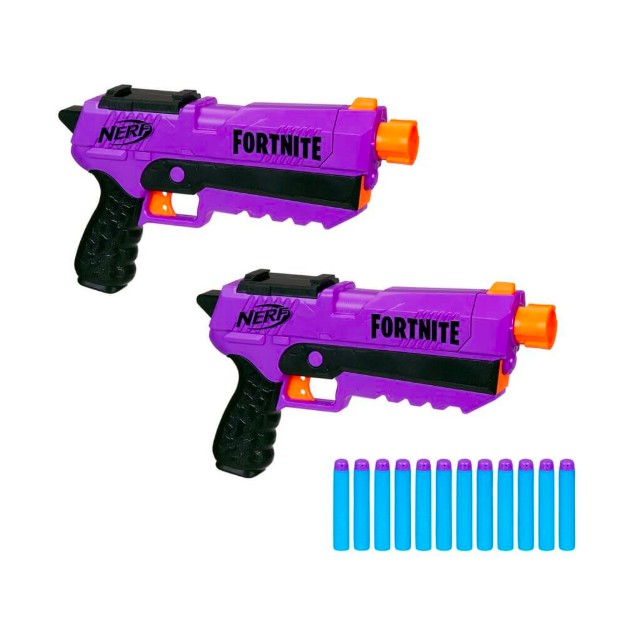 1062019 Drop into battle with this set of 2 Nerf Fortnite DP-E blasters for dual 3-dart blasting. This Nerf Fortnite DG dart blaster is inspired by the one used in Fortnite capturing the look of the blaster from the popular video game. Further it is an extremely powerful gun and.