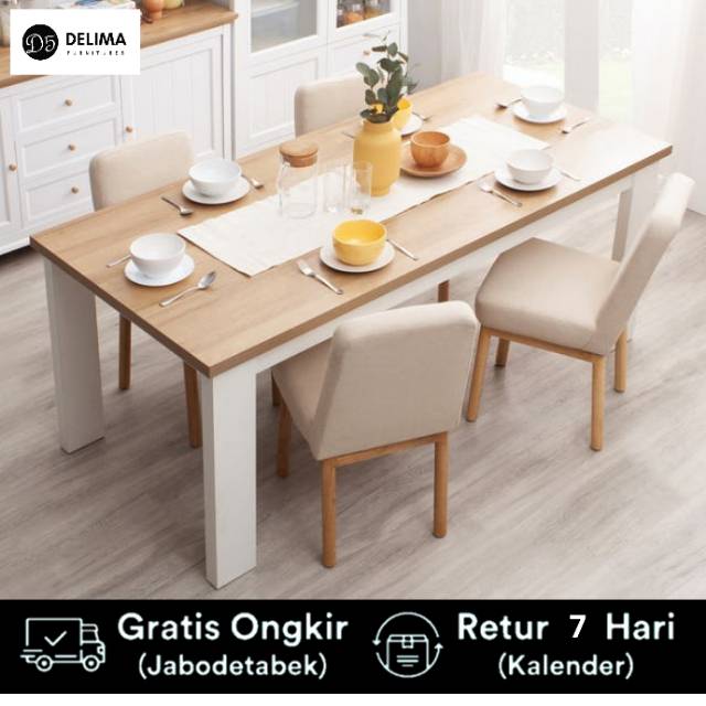 Eiji Dining Table Set Meja Makan 4 Kursi Style Scandinavian Cream Shopee Indonesia